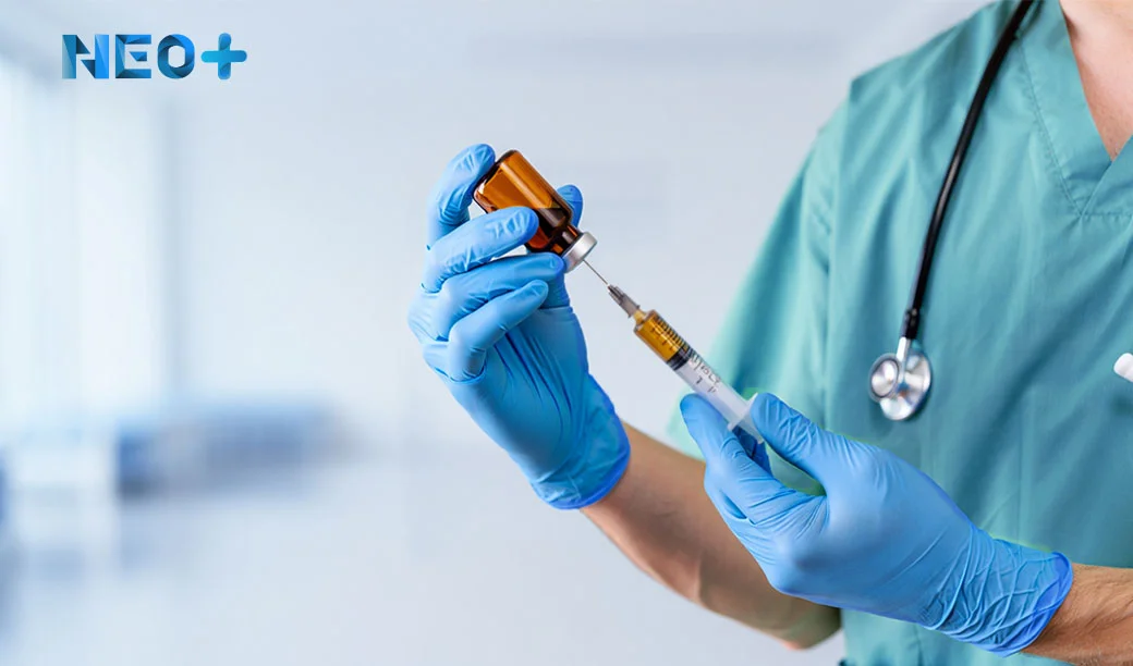 Врач набирает препарат в шприц